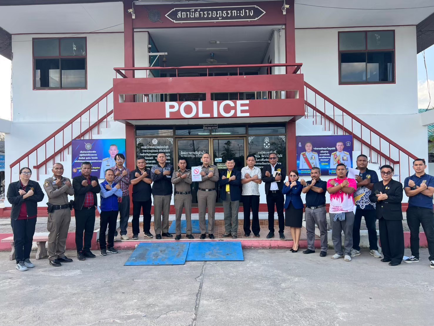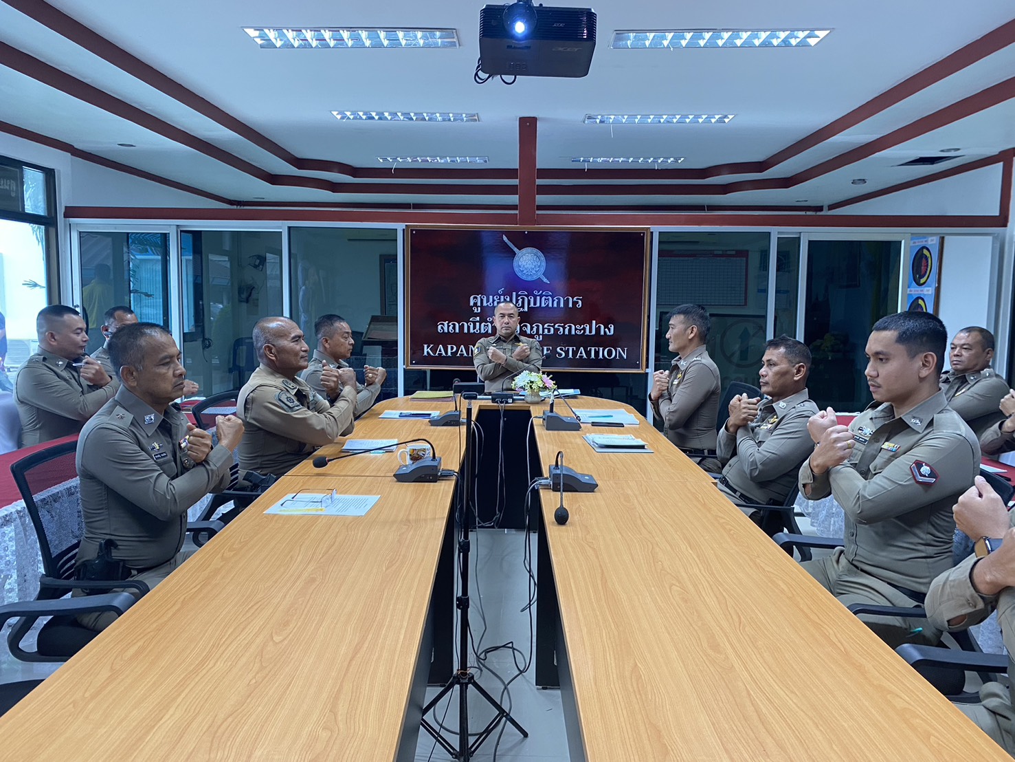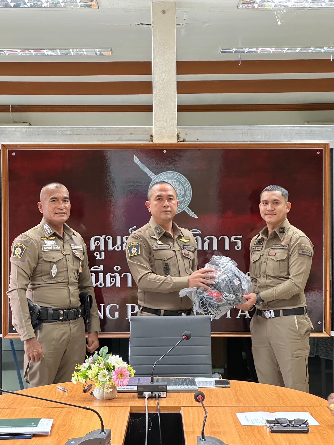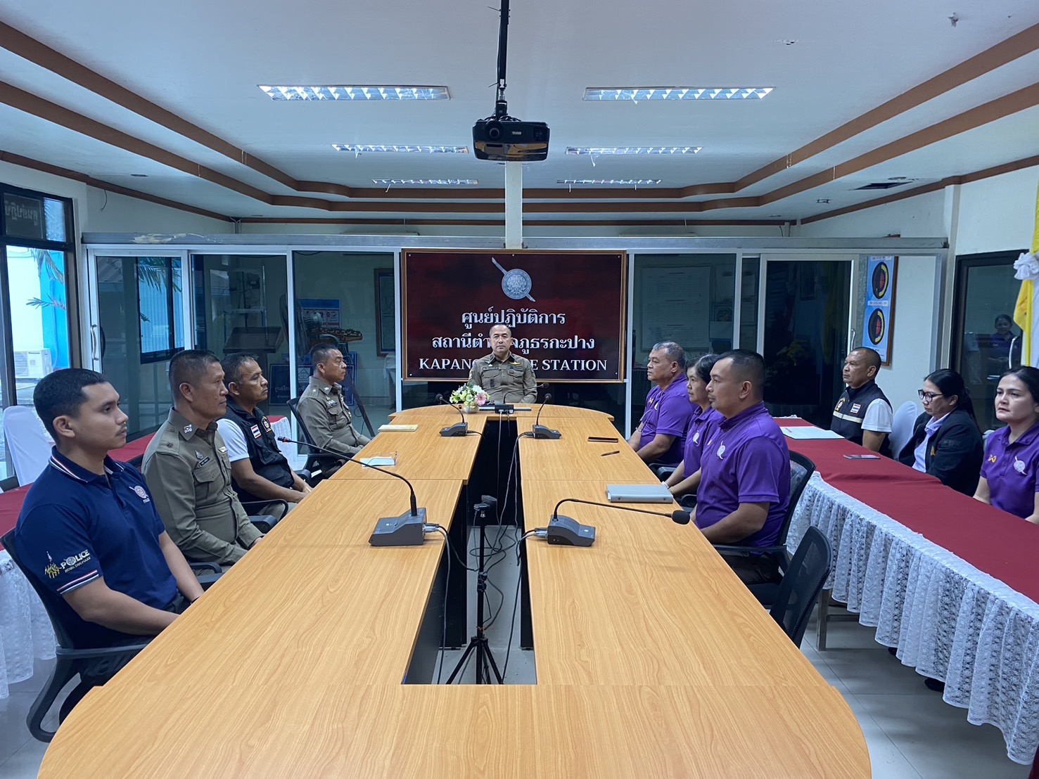พ.ต.อ.โชติ เพชรหนองชุม ประชาสัมพันธ์การเก็บของกลางและการจำหน่ายของกลางแก่ประชาชนผู้เข้าร่วมการประมูลของกลางตรวจจุดเก็บรักษาของกลางของสถานีเพื่อสอบถามความเข้าใจเพื่อป้องกันการทุจริต