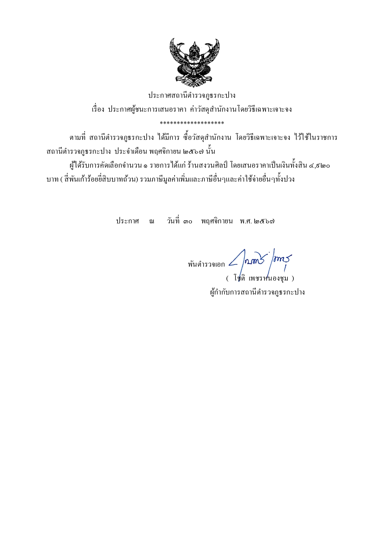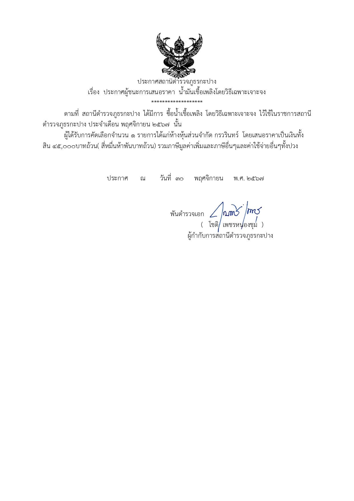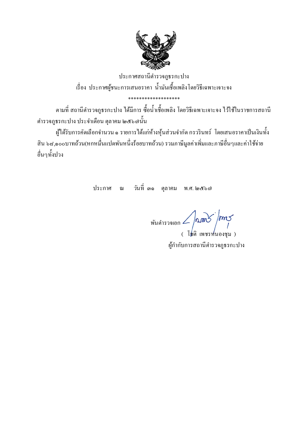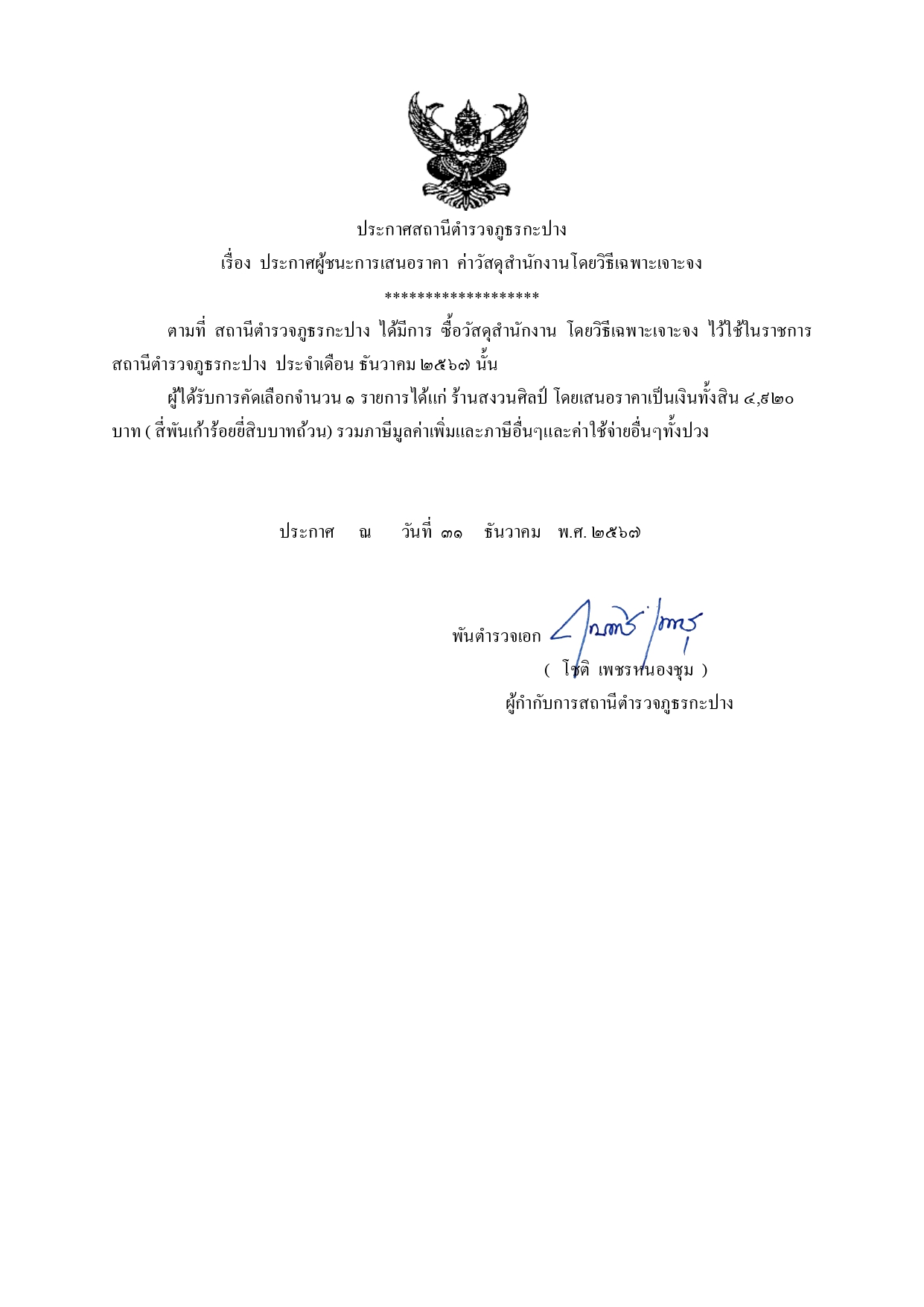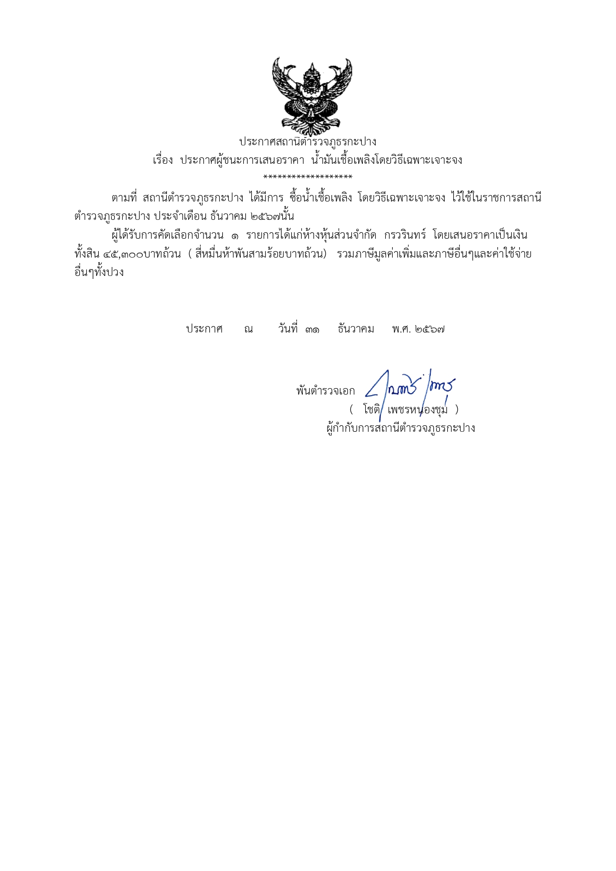 พ.ต.อ.โชติ เพชรหนองชุม ประชาสัมพันธ์การเก็บของกลางและการจำหน่ายของกลางแก่ประชาชนผู้เข้าร่วมการประมูลของกลางตรวจจุดเก็บรักษาของกลางของสถานีเพื่อสอบถามความเข้าใจเพื่อป้องกันการทุจริต