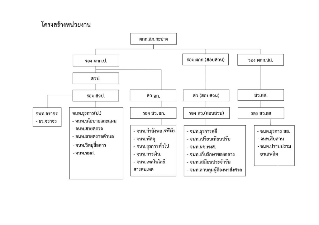 - หมายเหตุ : 1.รองผู้กำกับการป้องกันปราบปราม เป็นหัวหน้างานอำนวยการ งานป้องกันปราบปราม และงานจราจร