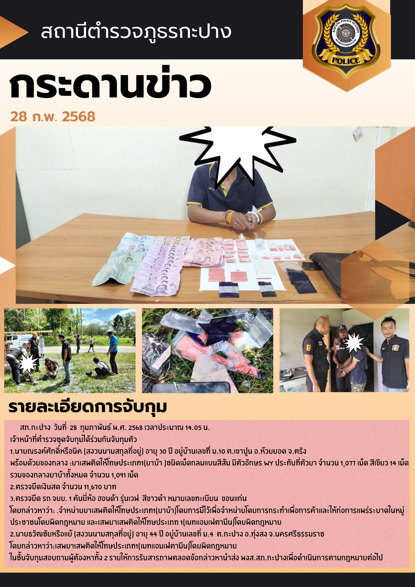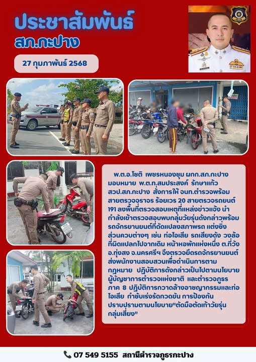 เรียน ผู้บังคับบัญชา ภ.จว.นครศรีธรรมราช สภ.กะปาง วันที่ 28 กุมภาพันธ์พ.ศ. 2568 เวลาประมาณ 14.05 น. (